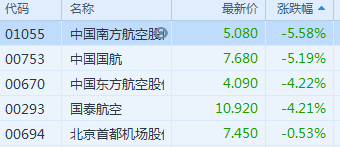 A两地航空股集体下挫美伊地缘政治持续紧张至油价飙升