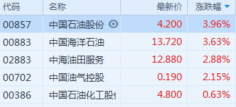 港股石油概念股普遍高开布伦特原油涨破70美元/桶