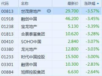 港股内房股普跌 银保监会再强调防止资金违规流入房市