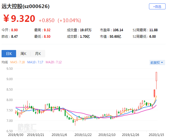 格隆汇1月15日丨远大控股(000626.SZ)两连板,报9.32元,总市值50.6亿元。