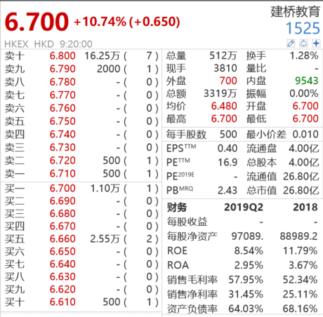 格隆匯1月16日丨上海民辦大學龍頭建橋教育(1525.HK)今日首日上市高開10.74%報6.7港元,盤前成交3319萬港元,最新總市值26.8億港元。