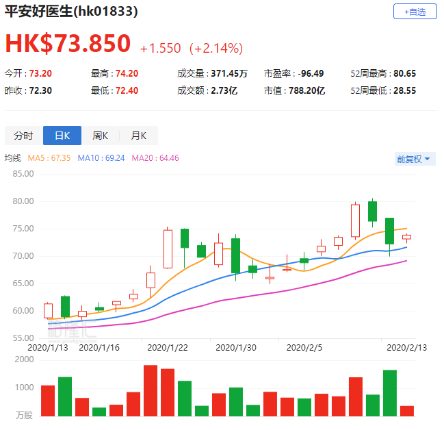 大和指,自1月22日以来,平安好医生的每日新增用户数量是今年前3周的10倍,市场教育和冠状病毒爆发引起的公众意识提高,是线上医疗谘询用户行为改变的“分水岭”。现时有50多个地方政府在与平安好医生合作提供线上谘询,这可能会为列入国家报销药品目录铺平道路。