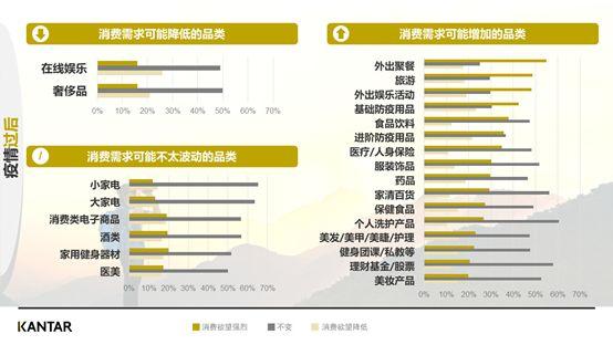 但疫情过后,这三个行业的消费反弹潜力巨大:有82%的消费者会恢复外出餐饮消费、78%的消费者恢复旅游、77%的消费者恢复外出娱乐。