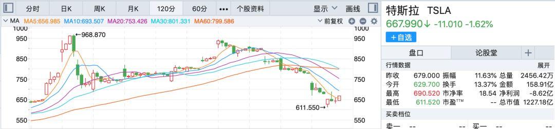 与苹果类似,特斯拉股价也在近期陷入萎靡状态。