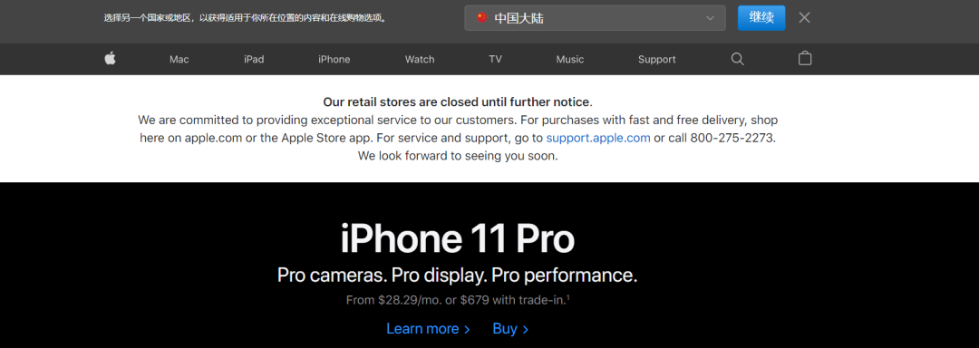 最新,苹果在公司网站宣布苹果无限期关闭大中华区之外的所有零售店,其产品销售无疑将迎来更大的打击。