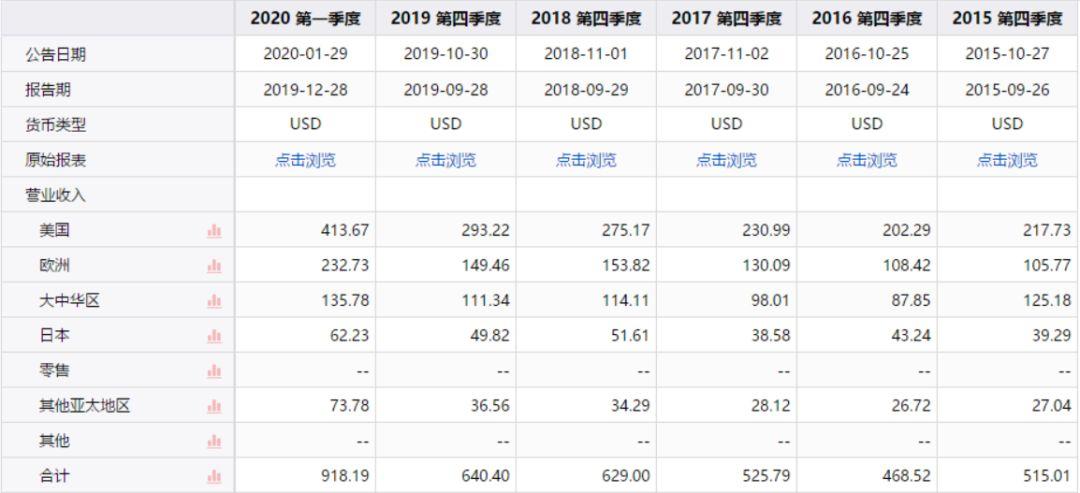 按照2020财年第一季业绩报告显示,苹果在大中华区市场录得收入135.78亿美元,占总收入918.19亿美元的14.8%。其他市场贡献营收则占85.2%。其中,美国贡献营收413.67亿美元;欧洲市场贡献232.73亿美元。