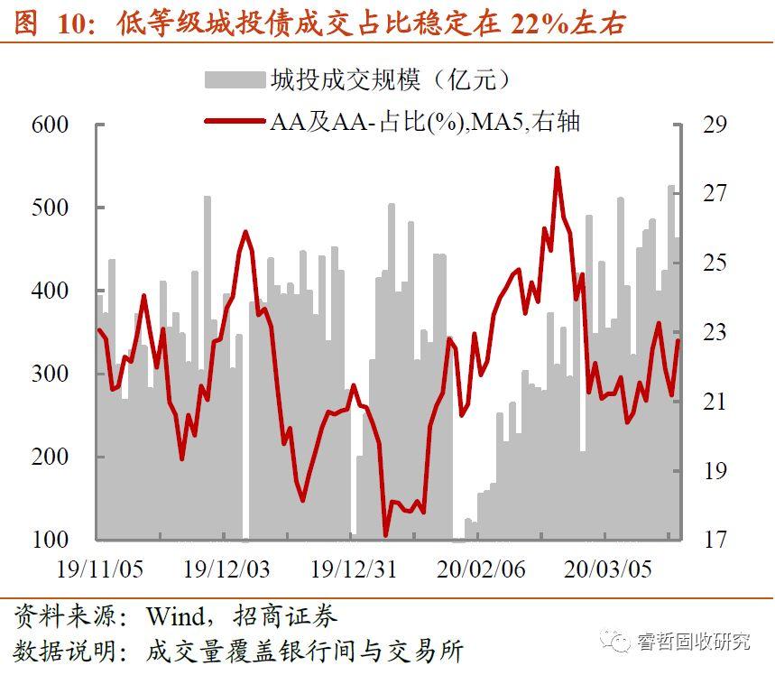 因此,结果上不难发现,AA城投债成交占比中枢及成交期限维持相对稳定(没有进一步下滑)。同时,成交收益率普遍高于估值收益率的环境中,1)信用利差多数走阔是更为合理的一种现象,2)成交高于估值收益率个券增加亦更为普遍。价格层面是否如此?以下进一步探讨。