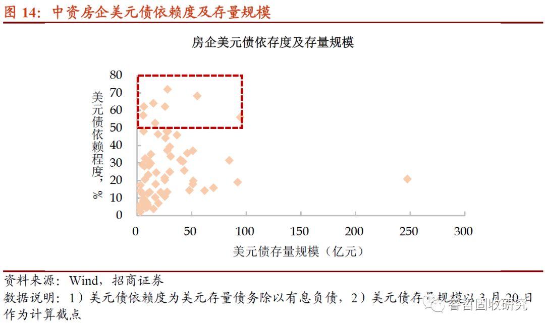 海外资本市场“流动性危机”的爆发引起强力去杠杆,各类资产价格出现暴跌,中资美元债同样难以幸免。折价抛售潮的出现,更是触发再融资渠道骤然收窄的担忧。一般情况下,信用债爆发流动性风险,大多会出现如下风险链条:债券发行困难→无法借新偿旧→到期压力加大→个券违约/交叉违约→再融资能力“瘫痪”。不过,这一逻辑形成的先决条件是对境外债极为依赖。事实上,房企境内融资受限后,近年来海外融资步伐加快。其中,建业地产、禹州地产、当代置业、大发地产和弘阳地产对美元债的依赖度均较高。
