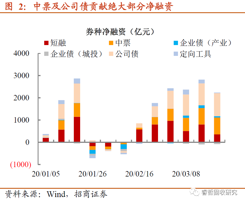 从公司债募集用途来看,借新偿旧仅是“冰山一角”。事实上,2月下旬以来,发行人抓住两大时机滚动债务,一是负债结构调整窗口期(将存量高息负债调整为低息债务),二是省去披露2019年年报和今年1季报的制度红利区间。发行人举债热情高涨,成为这一轮信用债供给维持在较高水平的源动力。