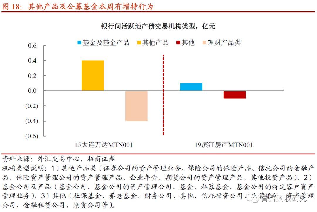 3)配置端来看,“口味”偏重的机构仍是买入的主力(其他产品类),不过已经有公募基金尝试买入,如“19滨江房产MTN001”。