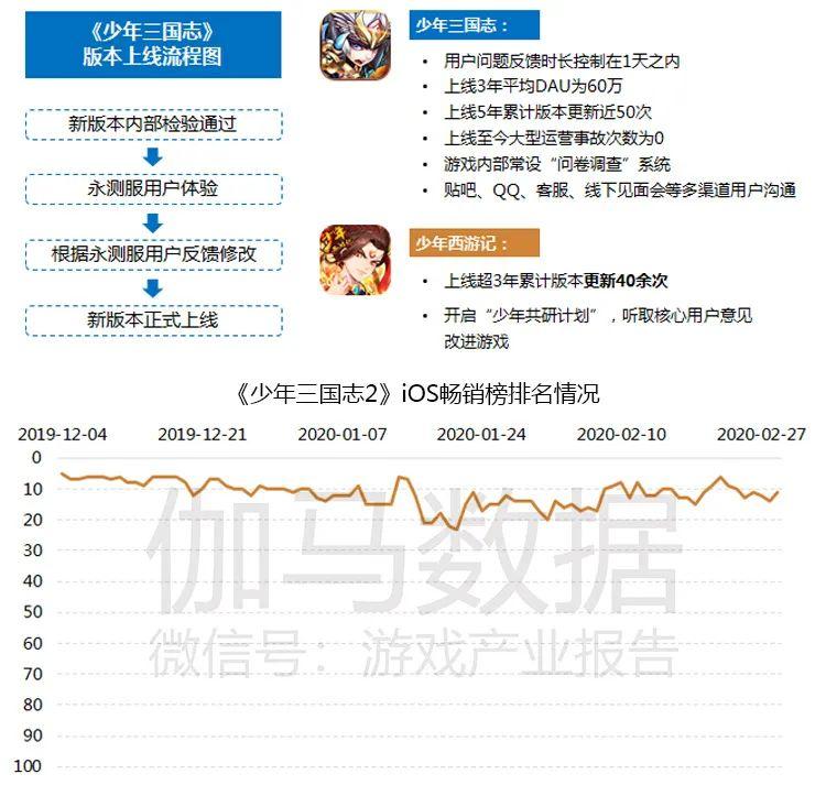 在产品方面,深耕卡牌类玩法为游族网络带来了较高的市场收益,其中《少年》系列产品表现最为突出,尤其是《少年三国志》系列。截至2019年底,《少年三国志》上线近5年,累计流水已达60亿元以上,能取得这样的成绩一方面源于在移动游戏市场早期其过硬的产品质量,另一方面则依托游族网络在早期便较为注重用户信息与数据反馈,勤于长线维护调优,以C2B的“用户定制”理念进行产品运营,这也使得《少年三国志》在近几年游戏市场精品化升级中仍能保持一定市场热度。2019年底,同样基于市场精品化发展趋势,游族网络适时推出《少年三国志》的续作《少年三国志2》,产品在玩法、美术等方面均得到升级,基于IP效应一经上线便获得良好的市场反馈。此外,2020年游族网络仍将持续推出《山海镜花》《少年三国志:零》等优质的差异化卡牌玩法新游,市场表现可期。