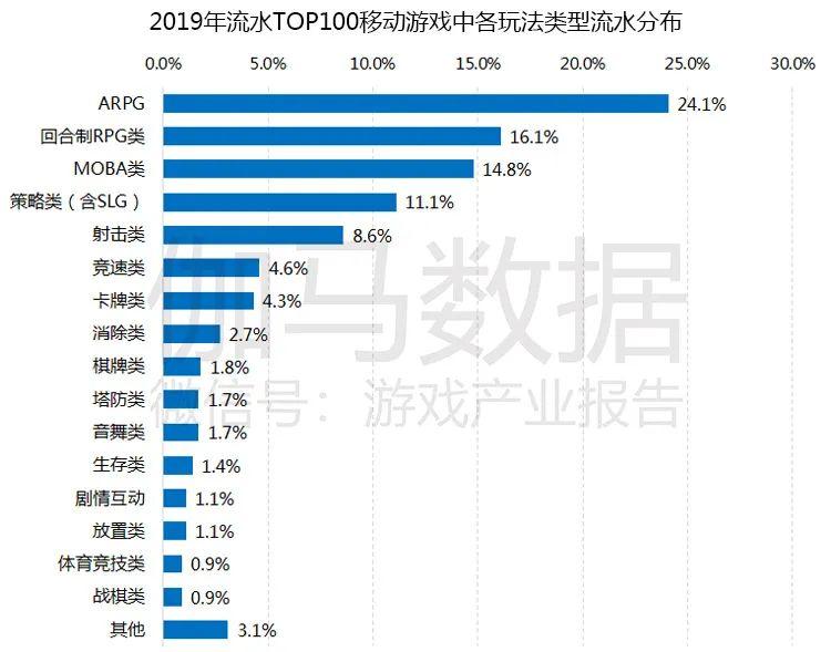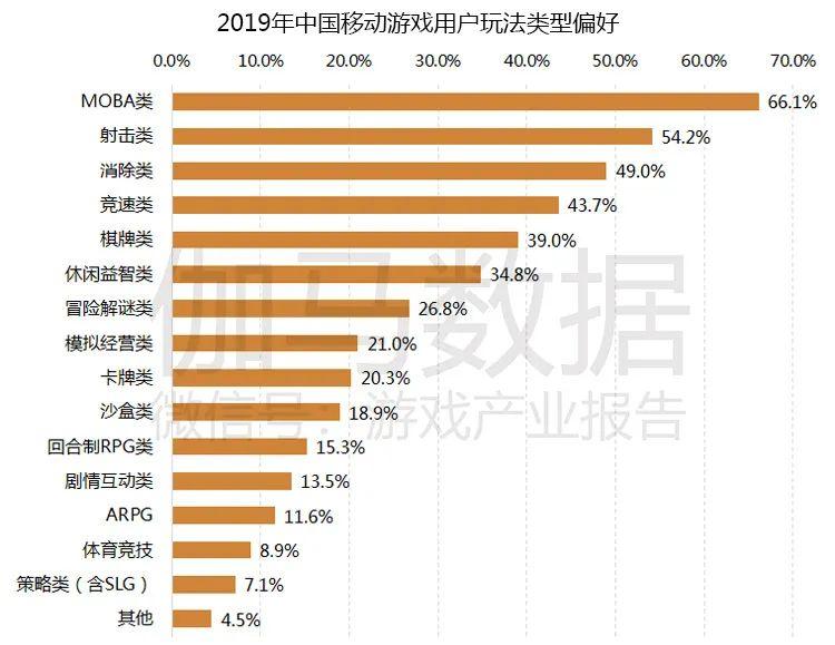 伽马数据通过2019年流水TOP100移动游戏中各玩法类型流水分布与游戏用户玩法偏好的对比发现:玩法的人气与整体流水表现并非正相关。