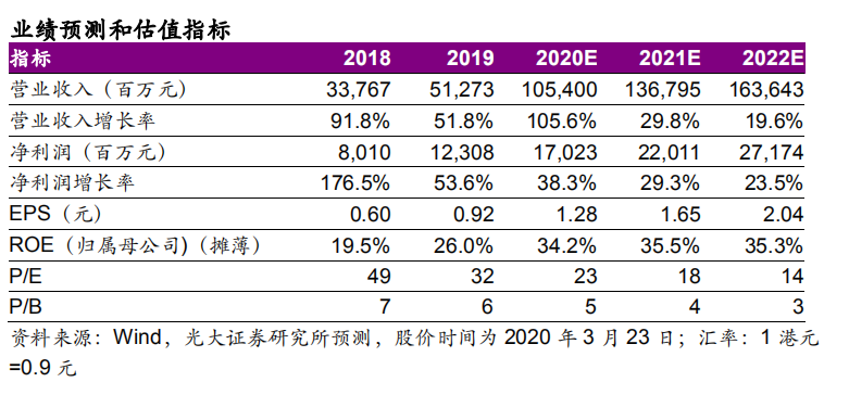 随着中民物业及新中民物业并表,公司在管面积实现跨越式发展。同时公司还将实现收入结构大幅优化,全国布局更加均衡,并切入公建蓝海,成为全业态龙头。我们上调20-21年预测EPS至1.28、1.65元,引入22年预测EPS为2.04元。鉴于行业成长性较强,市场普遍关注公司在未来1-2年的成长,故选用2021年估值。可比公司2021年平均预测PE为25倍,我们给予2021年25倍PE,上调目标价至45.86港元,维持“买入”评级。