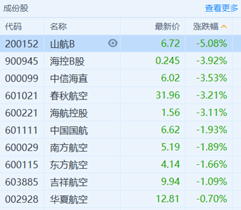 A股方面,航空板块全线收跌,春秋航空、海航控股双双跌超3%,三大航空公司跟跌。