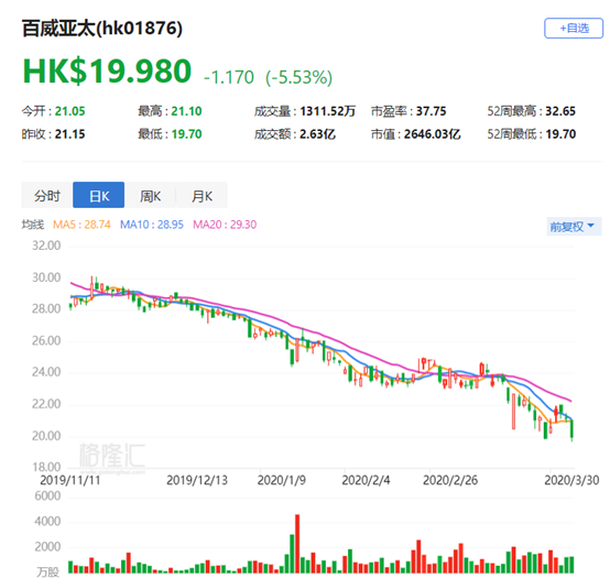 百威亚太跌近6%创新低 肺炎疫情使业绩承压