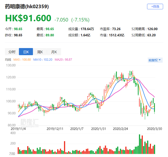药明康德H股跌逾7% A股跌6.22% 股东拟减持不超过1%的A股