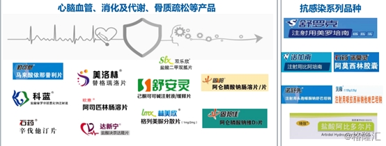 公司的普药主要涵盖心脑血管、消化及代谢、骨质疏松以及抗感染系列产品。其中,公司正在加大非抗生素类产品的推广力度以及拓展慢性病的口服产品线,包括销售增长速度较快的阿司匹林肠溶片、曲克芦丁片、复方氨林巴比妥注射液等。