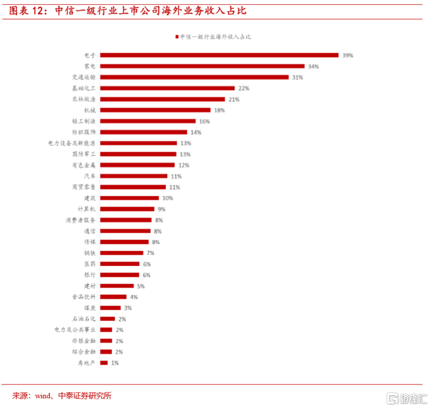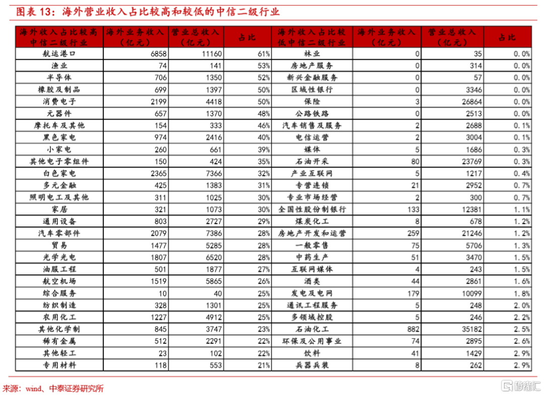 A股海外收入占比较低,海外需求预期最悲观时点已过