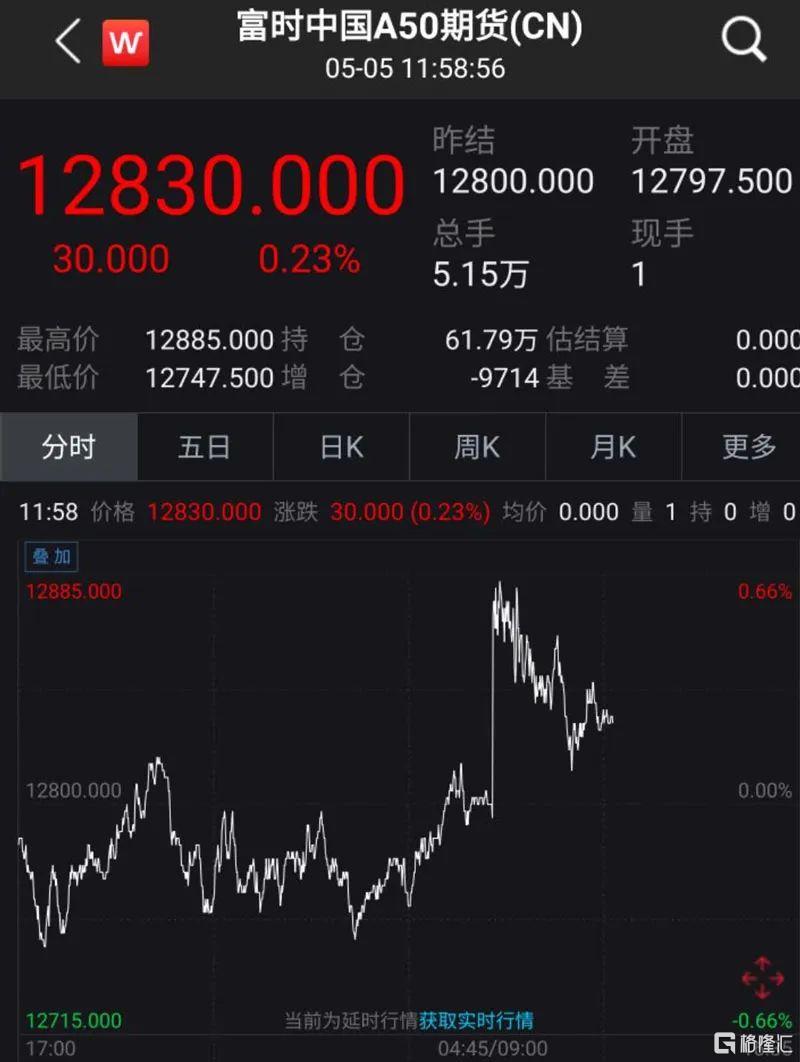 在新加坡市场交易的富时中国A50期指,今日开盘后便直线拉升,盘中涨幅一度达到0.66%。虽然该期指五一当日逾4%的跌幅令市场忧虑,但情绪释放过后,连续两日均收得阳线。