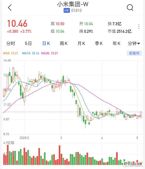 港股异动丨小米集团(01810.HK)涨3.77% 一季度智能手机出货量逆势增长9%