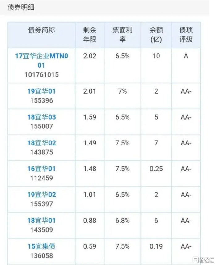 公开信息显示,“17宜华企业MTN001”于2017年5月2日发行,发行金额10亿元,票面利率6.5%,发行期限5年,年应付利息6500万元,付息日为5月6日。