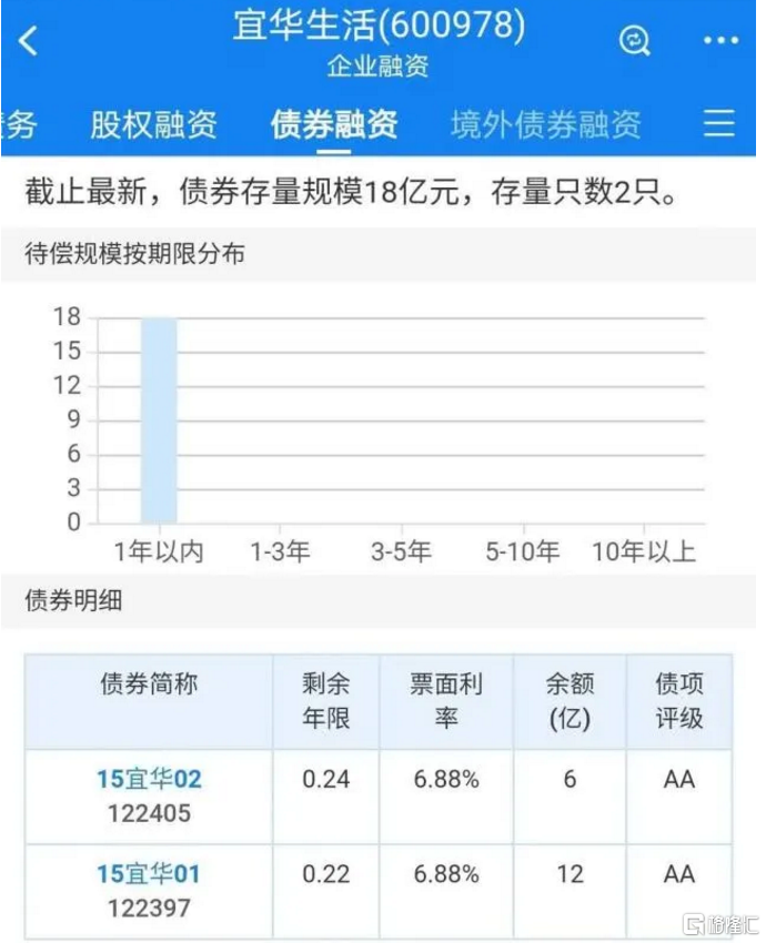 此外,“宜华系”旗下的宜华生活债券存量2只,共18亿元,均将在一年内到期。“宜华系”旗下另一家上市公司宜华健康也存续有一只2亿元的债券“18宜健01”。