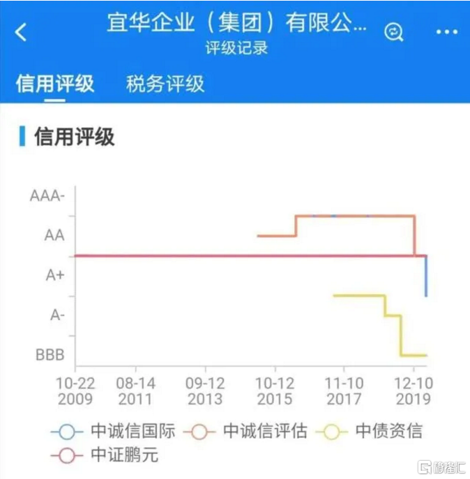 其实,去年12月,中诚信国际就曾将宜华集团的主体及上述债项信用等级从AA+下调至AA-,并将公司主体及上述债项信用等级列入可能降级的观察名单。