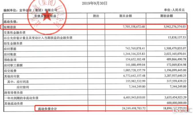 据2019年三季度财报显示,宜华集团总资产为559.54亿元,总负债为328.89亿元,其中流动负债242.49亿元。值得关注的是,宜华集团三季度的短期借款增加较快,从期初的59.42亿元,增长到了77.05亿元。