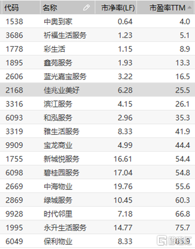 在物业板块依然有较大机会的情况下,聚焦此次被纳入MSCI中国小型股指数的佳兆业美好,公司在板块内部的估值仍然有较大优势。截止目前,多数物业股的动态市盈率估值在40倍以上,而佳兆业美好仅为25倍上下,而对标此次同一时间被纳入指数的中海物业(2669.HK)动态市盈率为55.6倍、宝龙商业(9909.HK)为44.4倍,佳兆业美好(2168.HK)的估值较之差异明显,其在行业中也仍然有较大提升空间。