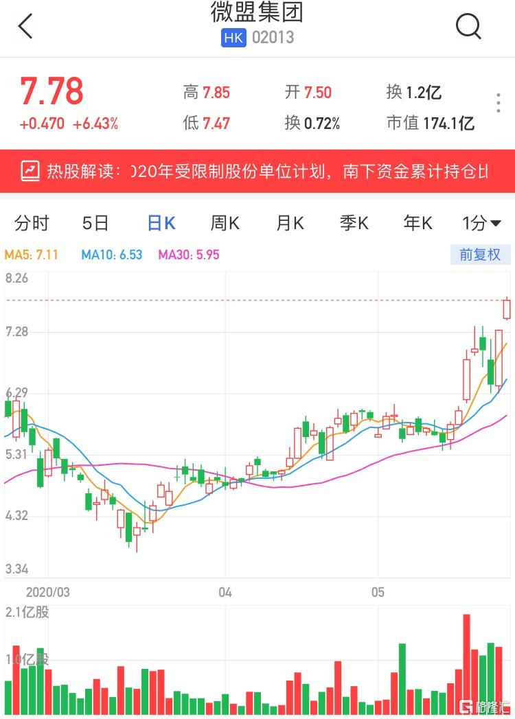 港股异动丨微盟(2013.HK)涨超6%创新高 拟采纳2020年受限制股份单位计划