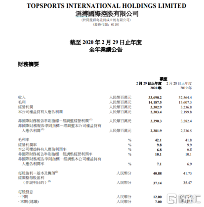 根据其最新财报,虽然整体规模增长受制于新冠疫情影响但基于门店业绩进一步提升、直营门店毛销售面积增加及批发业务规模增长,截至2月29日止年度集团收入约336.9亿元,按年升约3.46%;纯利约23.03亿元,按年升约4.73%;毛利141.88亿元,升约42%;经营溢利33.03亿元,升2%;毛利率达到42.1%,提高0.3个百分点;每股盈利40.88分。此外,截至报告期末,公司在国内300多个城市共拥有直营门店8395家,同比上年净增加52家,毛销售面积增长10.6%。