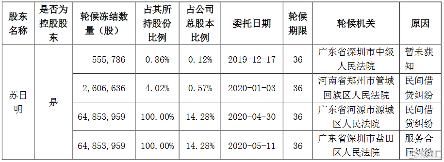 截至公告披露日,上述股东及其一致行动人所持股份累计被轮候冻结情况如下: