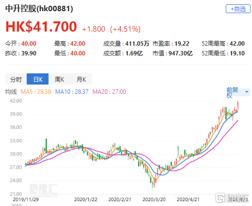 中金:上调中升控股(0881.HK)目标价至46.2港元
