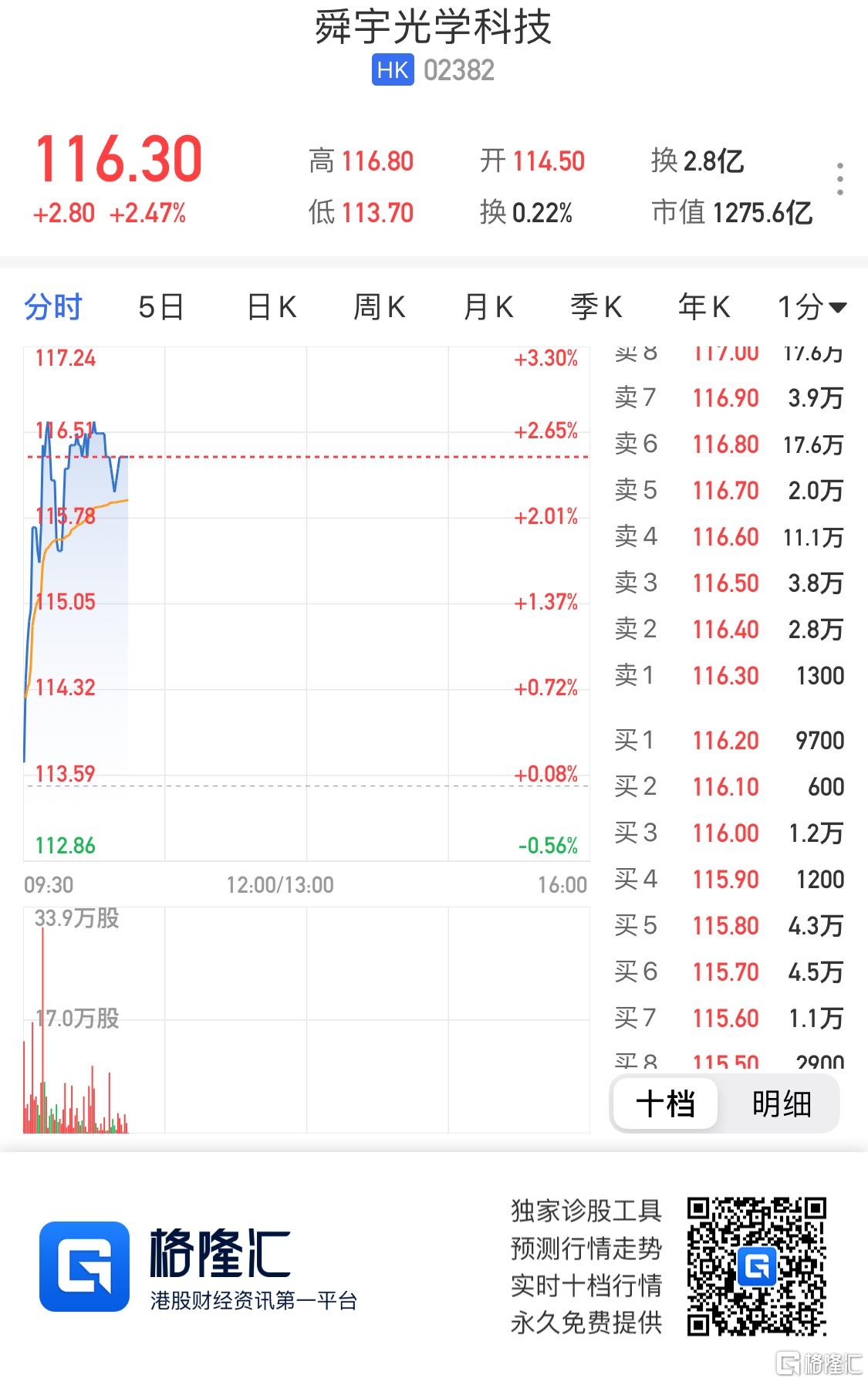 港股异动丨舜宇(2382.HK)升超2%领涨蓝筹 机构指5月出货量符预期