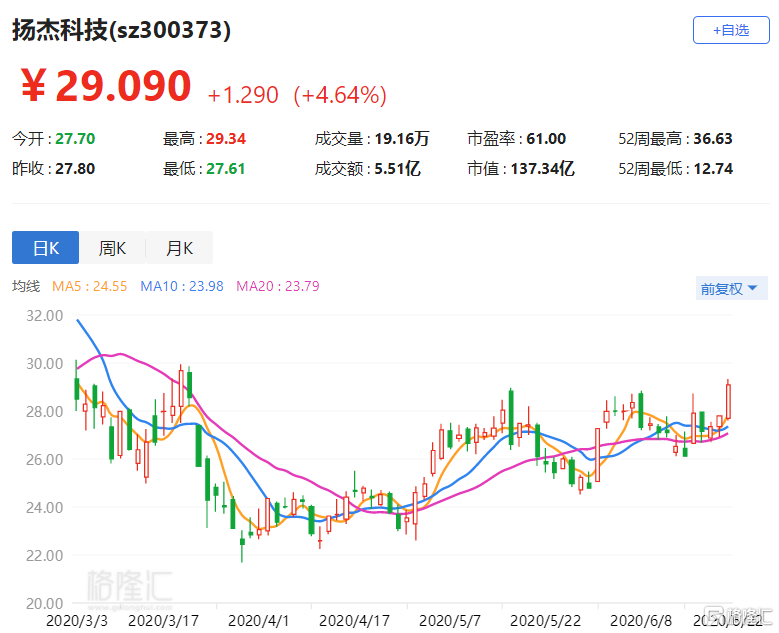 A股异动丨扬杰科技(300373.SZ)涨4.64% 拟定增募资不超15亿元