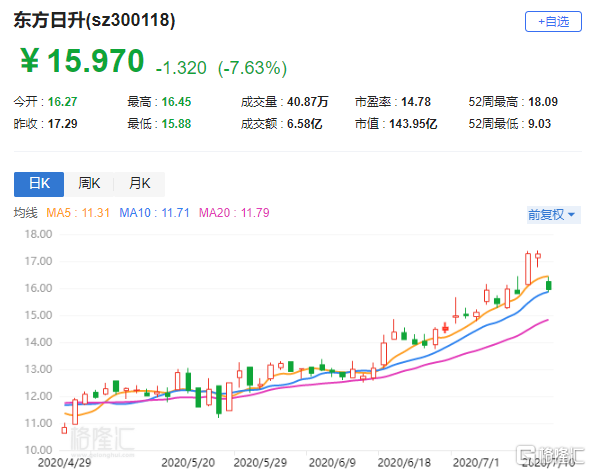 格隆汇7月10日丨东方日升(300118.SZ)放量大跌7.63%,报15.97元,暂成交6.58亿元,最新总市值144亿元。东方日升昨日披露2020年半年度业绩预告,预计归属于上市公司股东的净利润2.72亿元–4.08亿元,同比下降15.86%-43.91%。报告期内,受新型冠状病毒肺炎疫情全球蔓延影响,公司货物远洋运输受阻、进口国疫情管制等情况导致公司物流、销售周期延长。