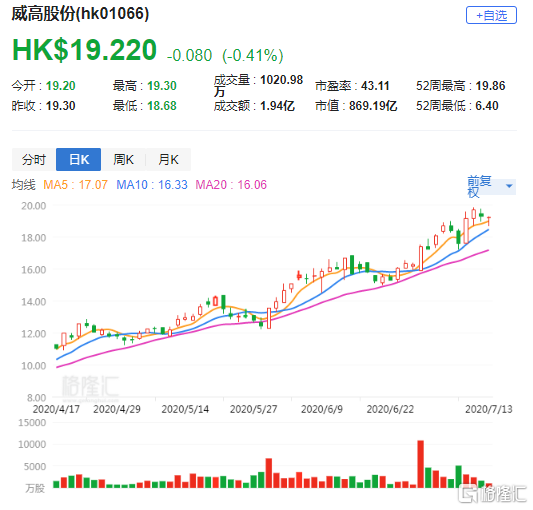 大摩指,新型肺炎疫情导致内地公立医院病人流量大降,今年1至5月份处方药销售按年下降23%。另外,而威高最近一次人造关节的中标价格亦下跌57%,故下调威高今年销售增长预测至4.3%,利润成长预期亦下调至3.6%。