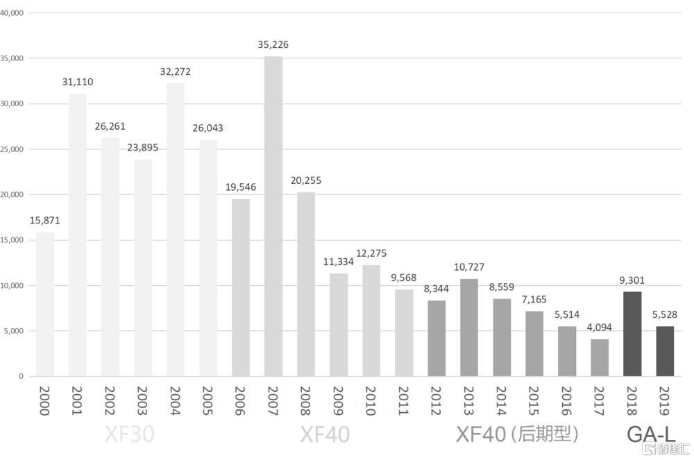 后驱产品线缩水让 GA-L 无处施展,唯一的出路只剩下 SUV,这又浪费了最初强调驾控性能的初衷。于是雷克萨斯寄予厚望的 GA-L 平台,只剩下 LS、LC 两款销量非常有限的旗舰车来体现价值。而 LS 作为雷克萨斯旗舰轿车,在等不来 GA-L 死撑的 2012-2017 年阶段便已经远离巅峰;2017 年 GA-L 世代的新 LS 姗姗来迟,却已经无法夺回失去的市场,2018-2019 年新 LS 的销量表现还是没法看: