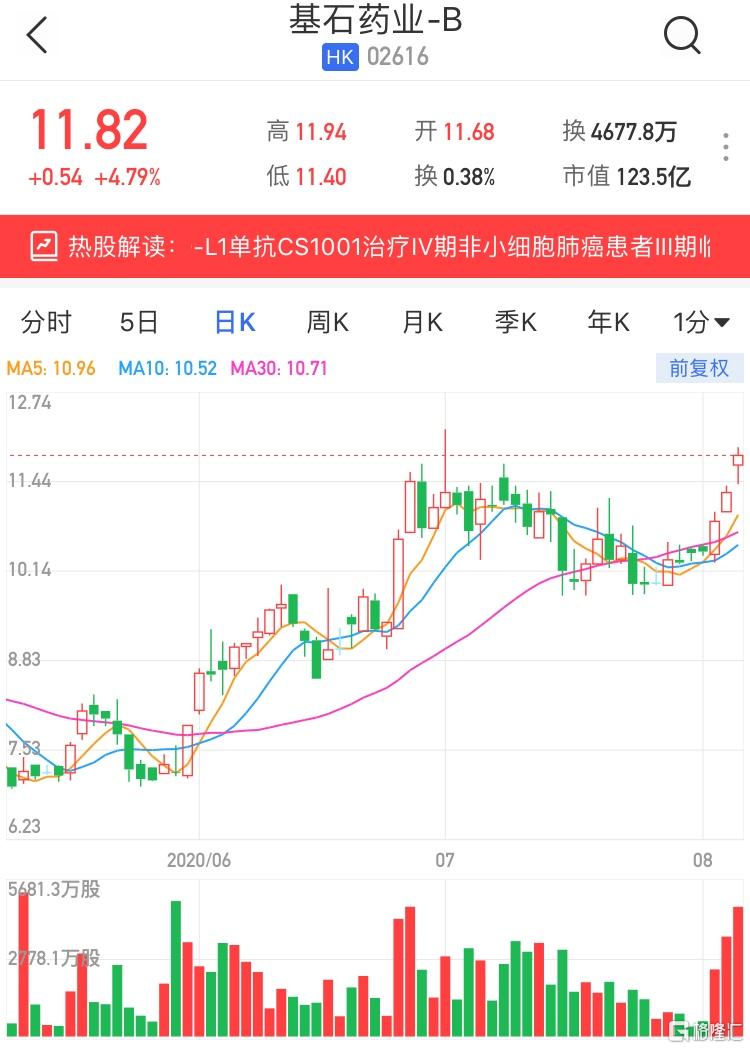 港股异动 | 基石药业-B(2616.HK)午间收涨4.79% 拟递交新药上市申请