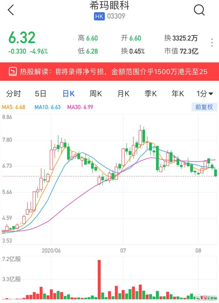 港股异动 | 希玛眼科(3309.HK)跌近5% 料中期业绩盈转亏