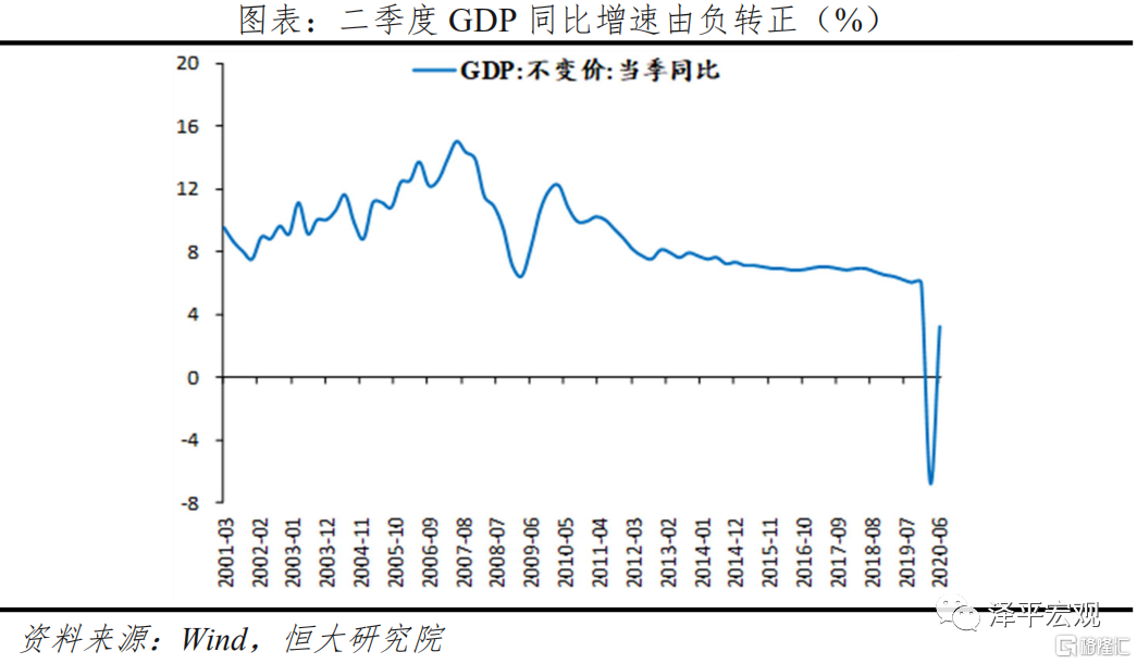 国内疫情防控得力,复工复产逐月好转,经济自3月以来稳步恢复,二季度GDP同比增长3.2%。二季度在海外疫情仍严峻、主要经济体经济大幅负增长的背景下,国内GDP同比增长3.2%,较一季度大幅回升10个百分点,三驾马车均不同程度恢复。从投资来看, 6月当月同比5.6%,连续3个月正增长。下半年财政政策持续发力且强调落地见效,支出效率有望提升,支撑基建投资。从消费来看,6月社零总额实际同比弱改善但仍处负区间,下半年消费恢复空间受就业形势和居民收入制约。从出口来看,6月中国出口金额同比0.5%,防疫物资和“宅”经济消费品是二季度出口超预期的主要支撑,未来出口取决于全球疫情、复工情况及中美贸易摩擦进展。从PMI来看,7月制造业PMI为51.1%,连续5个月处于景气区间,生产、需求持续回升。但值得注意的是,全球疫情形势严峻,世界经济深度衰退,中美贸易摩擦加剧,货币政策尚不具备收紧的条件,我们预计货币政策从超宽松步入结构性宽松。