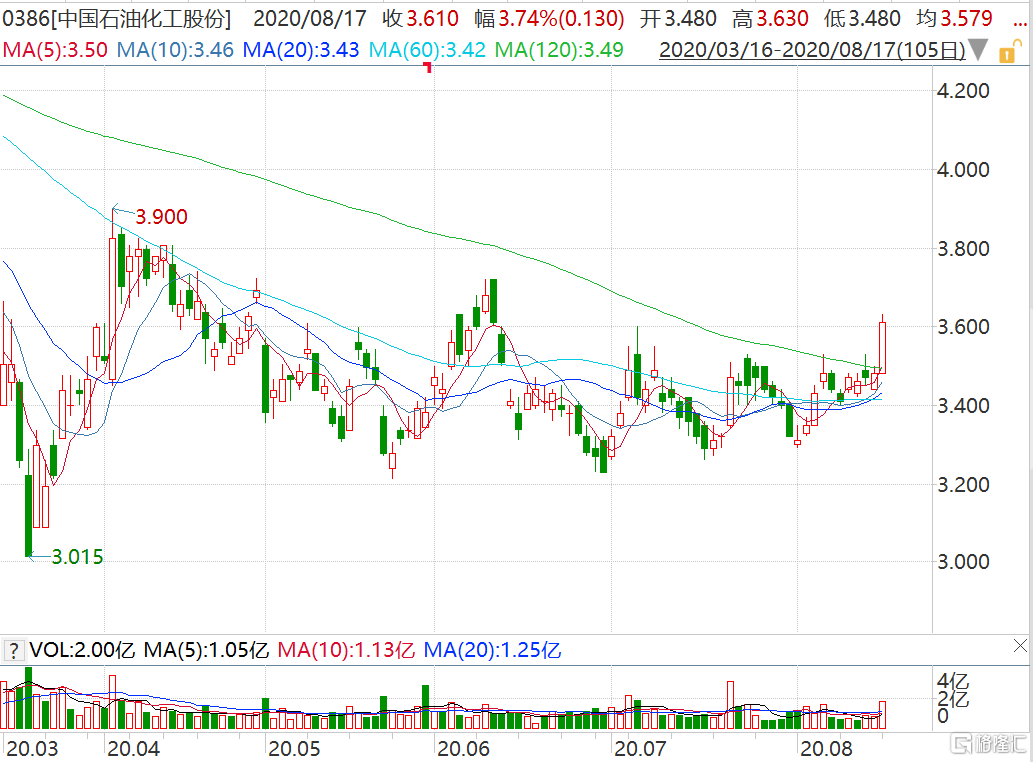 格隆汇8月17日丨今日A股市场中国石油收涨1.34%,中国石化收涨1.24%,均创7月22日以来最大单日涨幅,港股市场“三桶油”也出现明显上涨走势,中国石油化工(0386.HK)涨近4%,中国石油(0857.HK)涨近2%,中国海洋石油(0883.HK)涨0.3%。