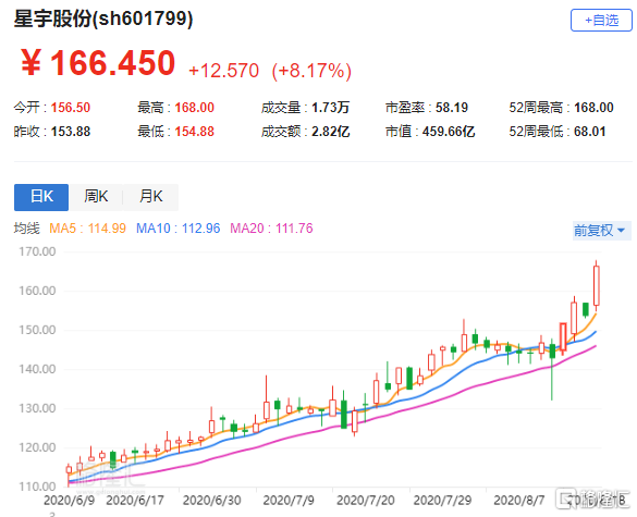 格隆汇8月18日丨星宇股份(601799.SH)涨8.17%盘中再创新高,报166.45元,暂成交2.82亿元,最新总市值459.6亿元。