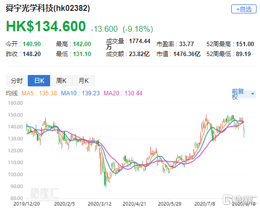 中金:维持舜宇(2382.HK)“优于大市”评级 目标价138港元