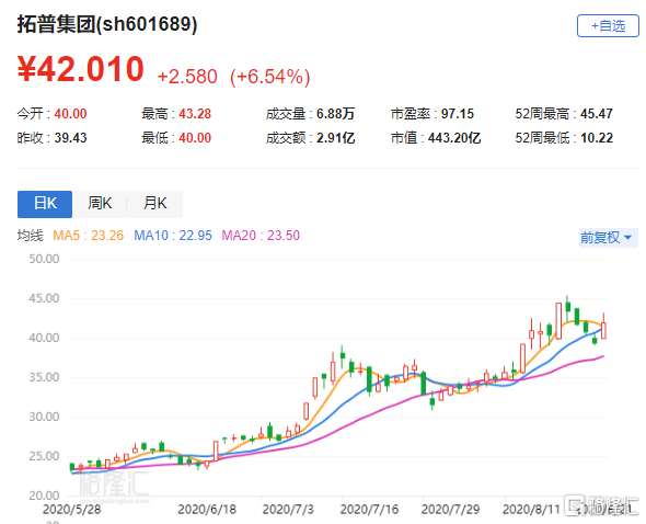 格隆汇8月21日丨拓普集团(601689.SH)盘初急升触及涨停,现报42.01元,涨6.54%,暂成交2.91亿元,最新总市值443亿元。拓普集团8月20日公告,上半年实现营业收入25.62亿元,同比增长5.07%;归属于上市公司股东的净利润2.16亿元,同比增长2.51%。另外,日前公司非公开发行A股股票的申请获审核通过。