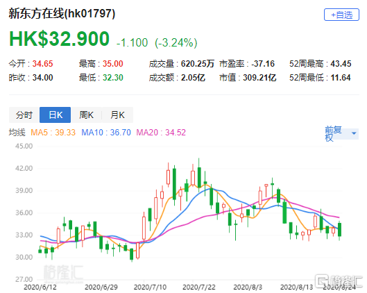 花旗:上调新东方在线(1797.HK)目标价55%至48港元 评级“买入”