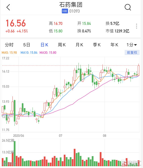 港股异动丨石药集团(1093.HK)午后直线拉升逾4% 中期纯利升23.2%至23.14亿元