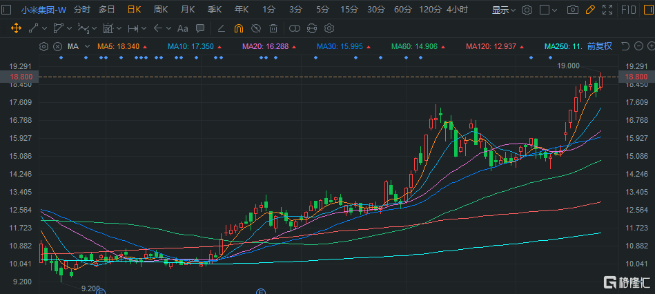 小米集团(1810.HK)涨近4%再创逾两年新高 今日盘后放榜