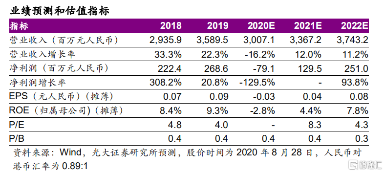 我们下调公司20-22年盈利预测,以反映海外工程延误影响下的成本端等变化;预计20-22年EPS分别为-0.03/0.04/0.08元人民币。公司业务竞争优势明显,待海外疫情得到控制,项目执行有望逐渐恢复正常,维持“买入”评级。