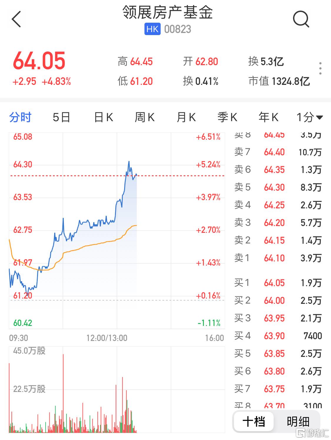 港股異動 | 領展房產基金(0823.HK)漲近5% 大摩指公司短期將繼續回購